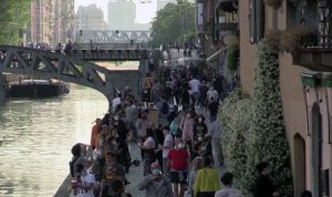 I Navigli presi d’assalto. Senza protocolli di sicurezza, distanziamento sociale, a volte persino senza le mascherine. Ecco lo scenario presentatosi ieri nel capoluogo lombardo all’ora dell’aperitivo, che rischia di ripetersi durante questo weekend.